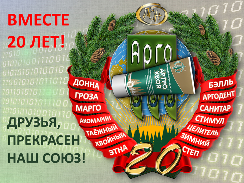 Вот наверняка, кто-то не знает, что наступивший год - юбилейный. Уже 20 лет АРТРОХВОЯ в союзе с АРГО несет Здоровье и Успех всем, кто ценит себя и своих близких.
