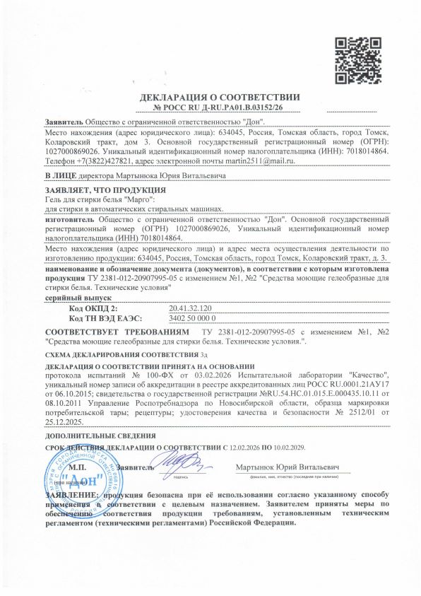 Гель для стирки белья "Марго"