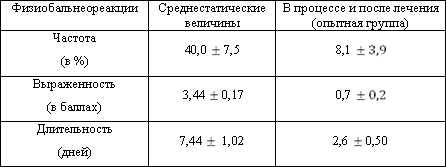 Картина физиобальнеореакции на лечение (Таблица 2)