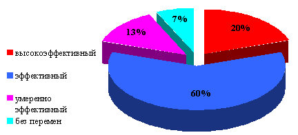 Так, при КОД равном 0,1 - 0,3 - эффект расценивался как минимальный, 0,4 - 0,7 - средней выраженности, 0,8 - 1,0 -выраженный.